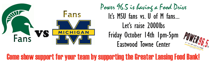 1pm til 5pm Power 96.5 will be raising food for the Greater Lansing Food Bank!